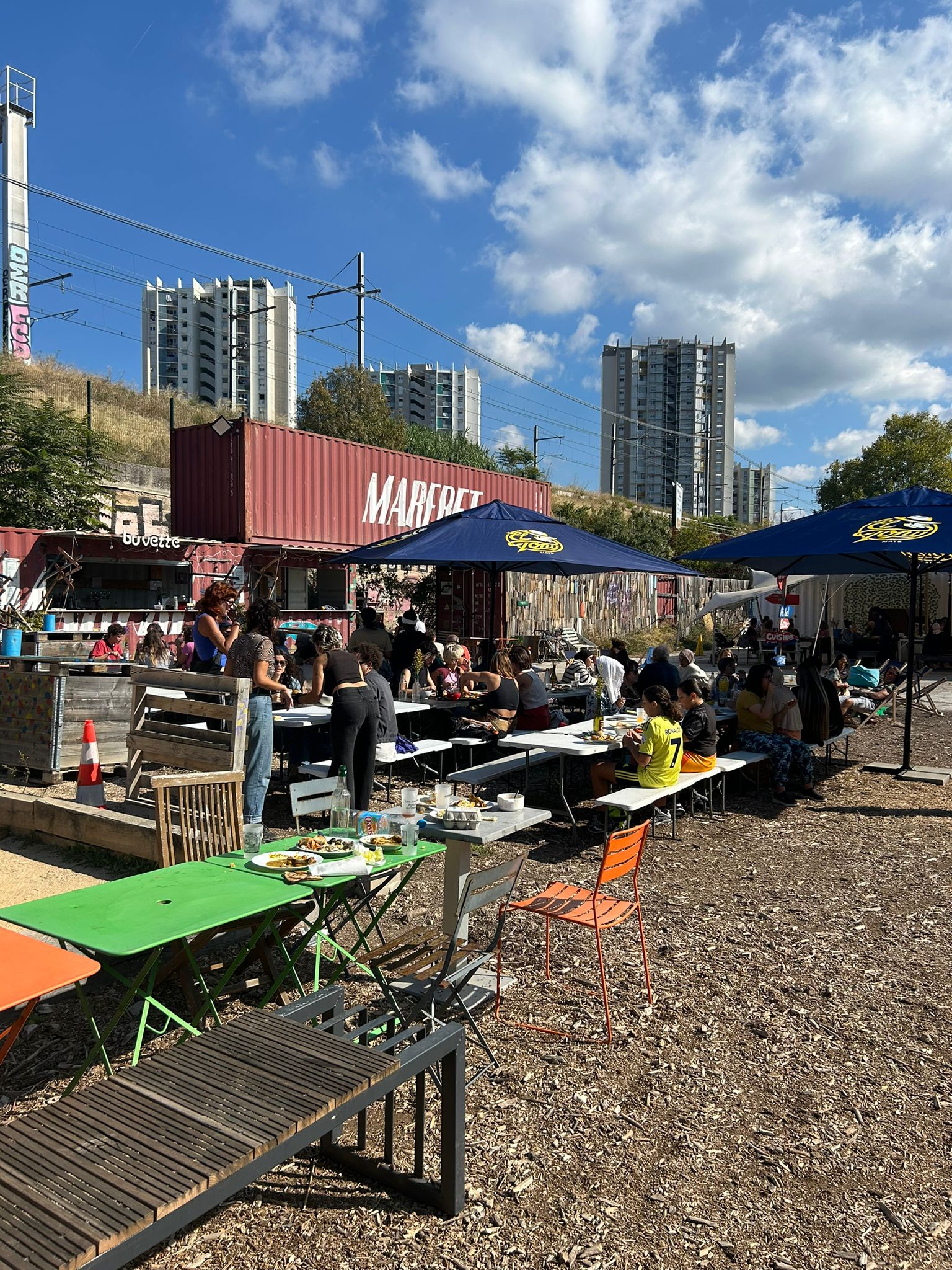 Le 20 septembre, sous un soleil rayonnant, nous avons rencontré pour la première fois Air Bel, dans une ambiance festive et chaleureuse, à l’occasion de sa fête de quartier. Lors de cet événement, qui se déroulait sur la place du marché, nous avons pu rencontrer Sandra et Paula du Centre Social Air Bel. Elles nous ont alors présenté à de nombreuses personnes : des habitants, des acteur.ice.s locaux et nous avons eu un échange particulièrement riche avec Nour et Abou, tous les deux faisant parti.e.s de l’association Muses urbaines. Cette première rencontre a éveillé en nous un intérêt croissant pour ce quartier et ses habitants.
