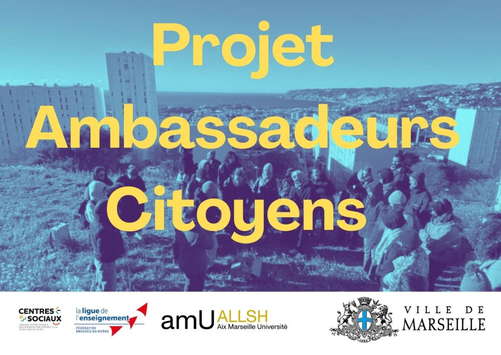 Le projet Ambassadeurs Citoyens est une démarche d’éducation populaire portée par la Ville de Marseille, en partenariat avec des centres sociaux de plusieurs quartiers, le Musée d’Histoire de Marseille, les Archives municipales, l’association Paroles Vives et des étudiants et étudiantes du Master 2 de Médiation Culturelle des Arts de Aix-Marseille Université et du DN MADE du Lycée Denis Diderot.